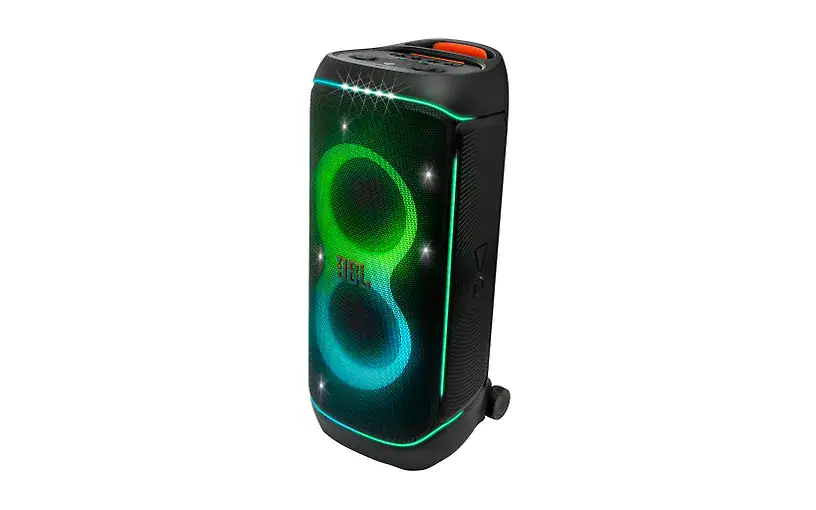 Vaikka kaiutin on kookas, se kulkee helposti mukana. Mukava kantokahva, leveät pyörät ja roiskeenkestävä IPX4-rakenne tekevät siitä täydellisen kumppanin myös ulkoilmajuhliin, puistossa hengailuun tai altaalla rentoutumiseen.